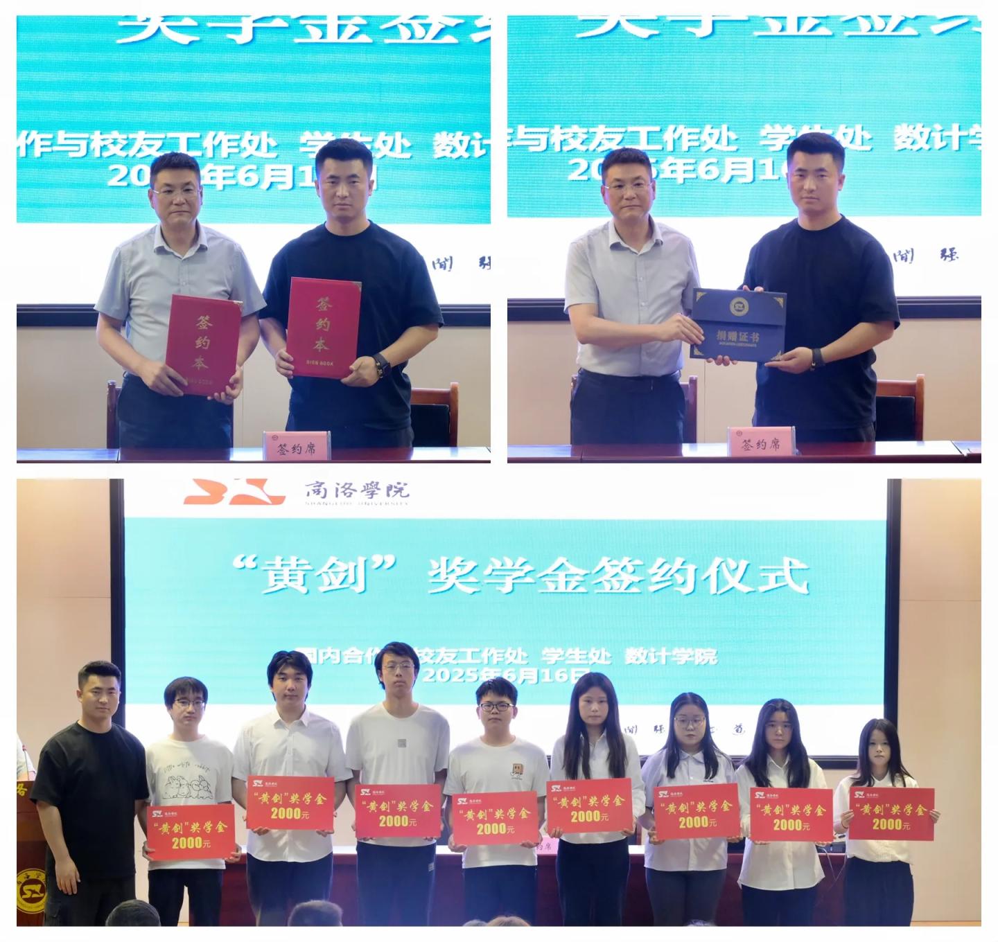 活动期间,校企双方签订了《奖学金捐赠协议》、颁授了《捐赠证书》,黄剑现场为今年会官方网站2025年“黄剑奖学金”获奖学生代表颁发了奖学金。