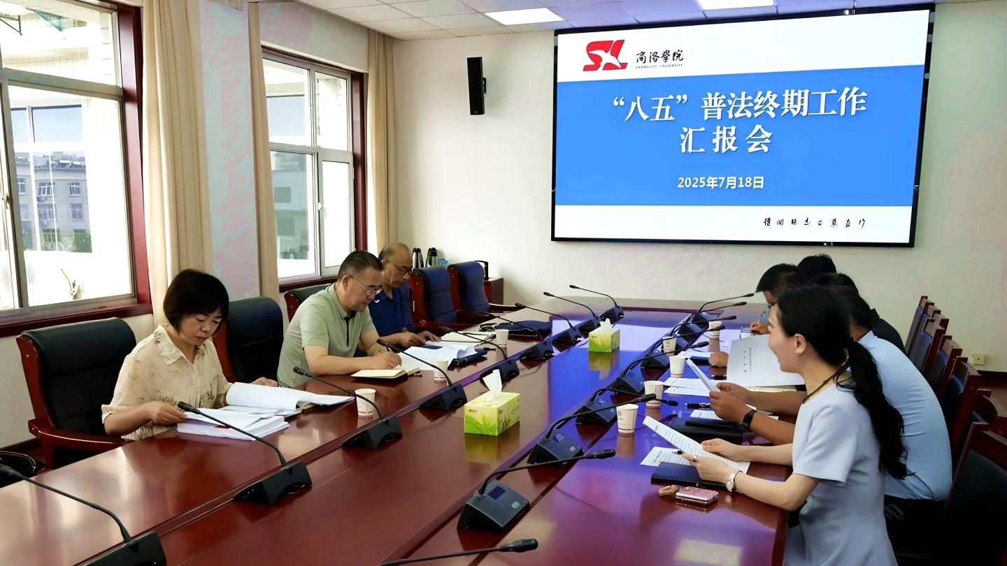 7月18日,商洛市“八五”普法总结验收实地调研组成员,市委组织部四级调研员李海平、市中级人民法院四级调研员孙天峰、市委依法治市办秘书科科长伍丹英一行3人来校开展“八五”普法终期检查指导。党委办公室·院长办公室、宣传部、学生处、保卫处等部门相关负责人参加汇报座谈会。