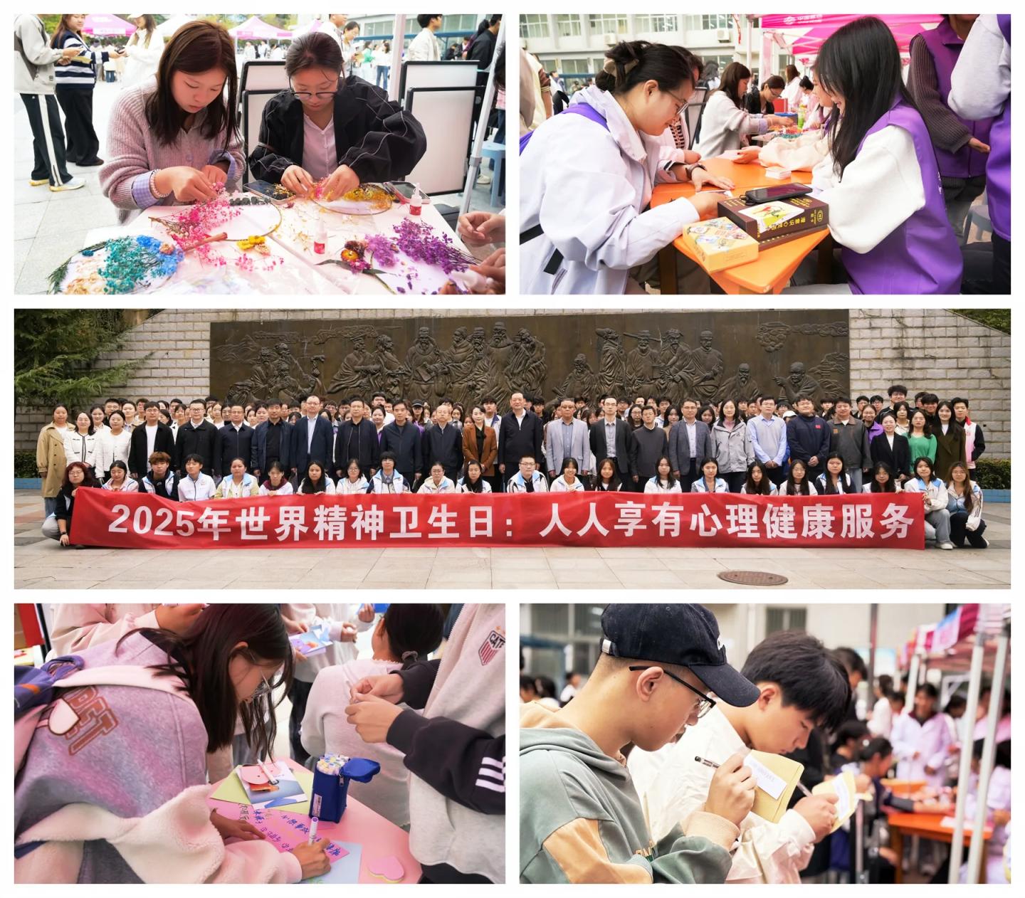 在玉兰广场,学校精心设置了暖心咨询窗、朋辈充电坊、焦点赋能站、安康义诊台、心灵趣测馆、向阳花语角、秦岭红心站等心理健康互动体验活动。活动形式多样、内容丰富,吸引众多师生驻足参与,深入了解心理健康知识常识。