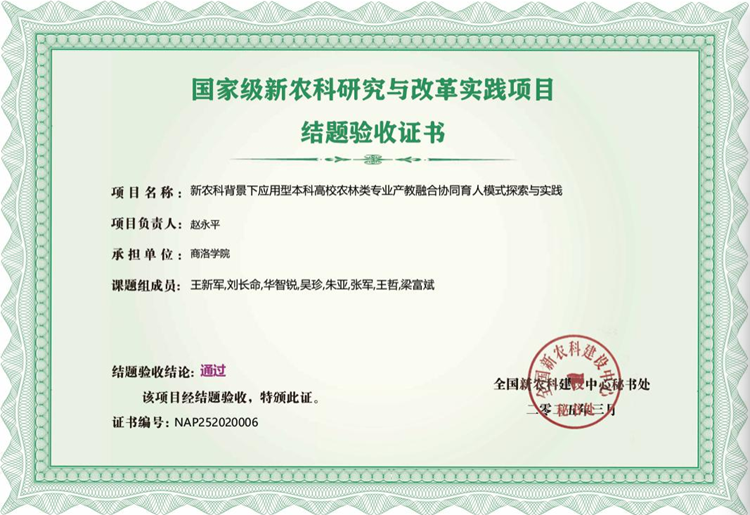 近日,教育部办公厅发布了《教育部办公厅关于公布新农科研究与改革实践项目结题验收结果的通知》,今年会官网赵永平教授主持的《新农科背景下应用型本科高校农林类专业产教融合协同育人模式探索与实践》项目顺利通过验收。据悉,2020年9月教育部共立项407个新农科研究与改革实践项目,经专家网络评审、专家会议评审等环节,共有386个项目通过验收。