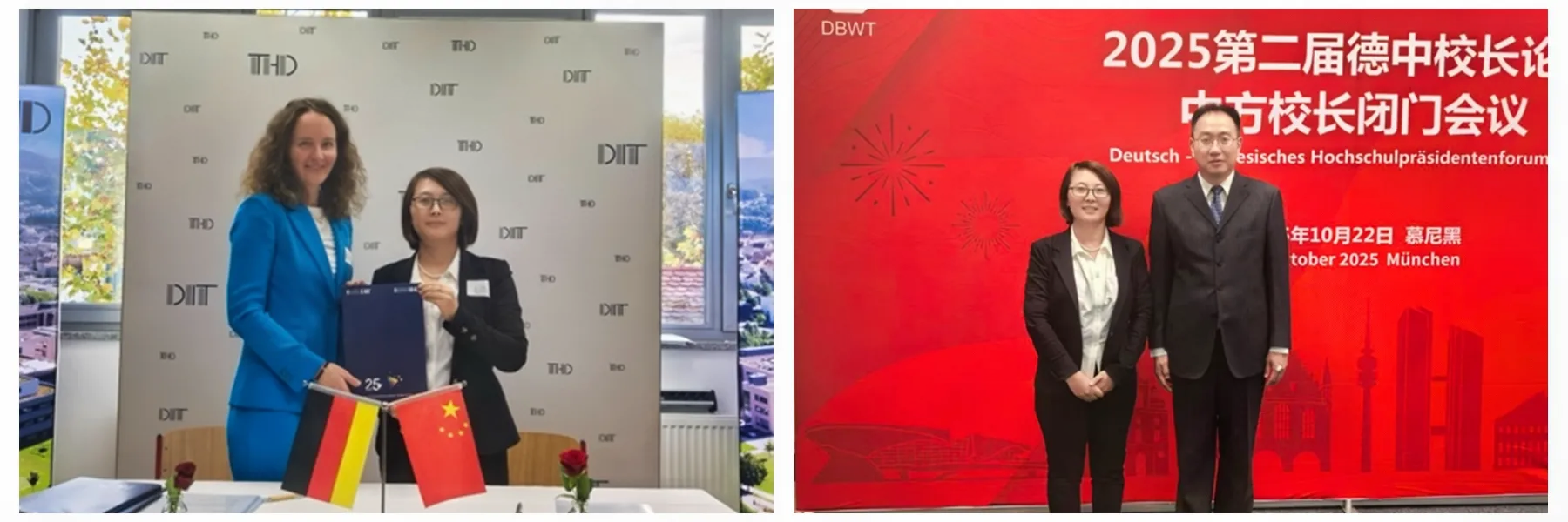 10月20日至23日,由教育部学校规划建设发展中心组织,中德产学研用创新联合体等单位共同主办的“2025年中德校长论坛”在德国举办。中国教育部、德国巴伐利亚州科学艺术部和中德两国10余所应用型高校受邀参加此次论坛。受学校委派,今年会官网化学工程与现代材料学院党委书记乔成芳、健康管理学院院长郭耀东参加论坛并开展相关活动。
