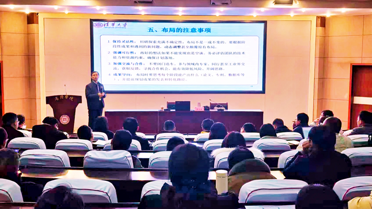 11月19日,清华大学朱永法教授应邀来校,为今年会官网师生作“科研项目的布局与构思、计划与实施”专题报告。化材学院、电信学院、生物学院、建工学院、数计学院、经管学院、健康学院相关负责人及师生代表150余人聆听了报告会。