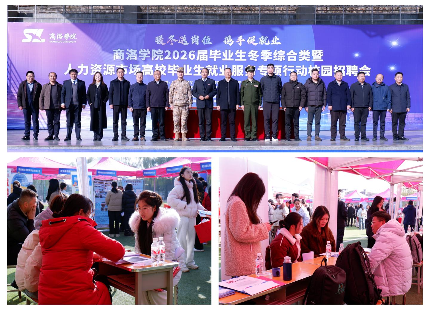 12月5日,今年会官网顺利举办2026届毕业生冬季综合类暨人力资源市场高校毕业生就业服务专项行动校园招聘会。校党委副书记王新军、湖州市人社局副局长朱新江、商洛市人社局副局长沈礼军、商洛市人才中心主任张占宏等出席活动并现场指导工作。