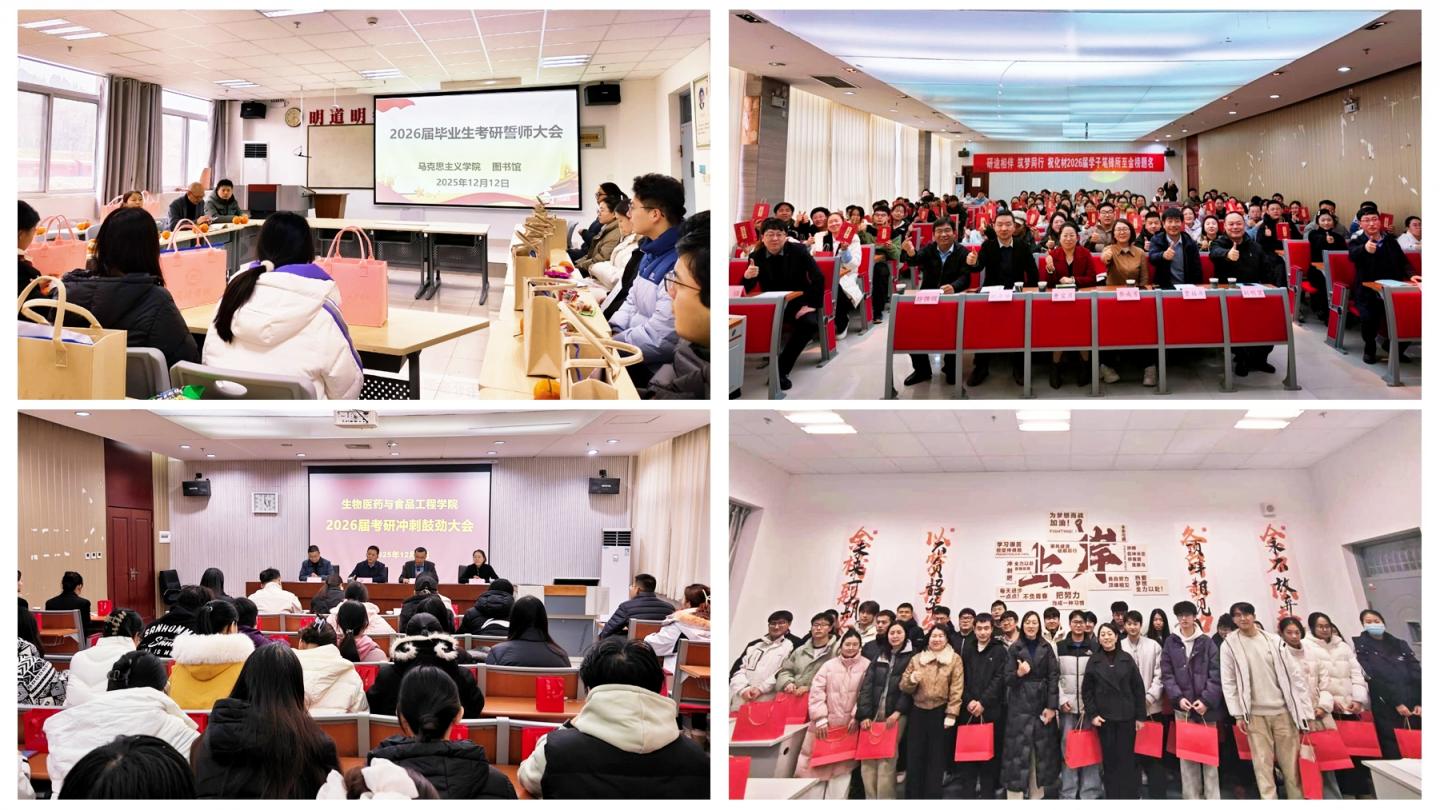 多个学院通过举办考研誓师大会或动员会,帮助学子明确目标、凝聚共识。马克思主义学院召开专题誓师大会,激励学子秉承校训、科学备考,将个人理想汇入时代发展洪流。化材学院、生物学院、建工学院分别举办誓师及冲刺鼓劲大会,通过分析考研动态、分享往届佳绩、带领学子庄严宣誓等形式,激发学子昂扬斗志。经管学院、艺术学院则以班级为单位,召开考研动员主题班会,进行一对一指导动员,让鼓励更入人心。