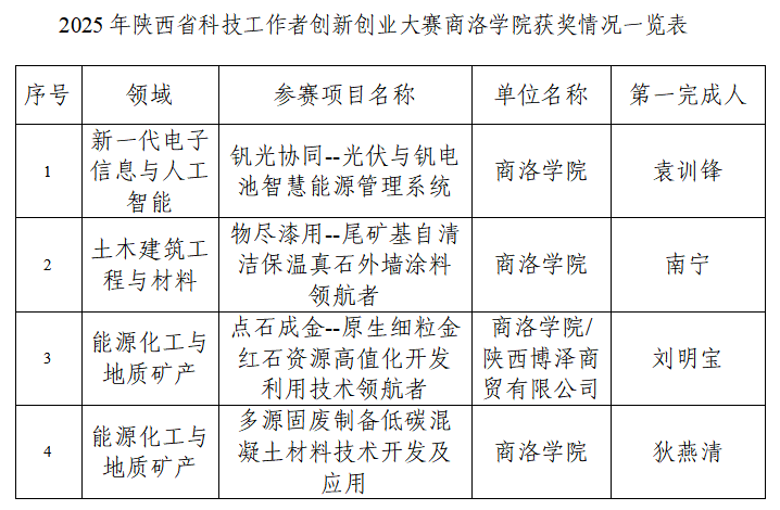 近日,由陕西省科学技术协会、陕西省科技厅、陕西省发展和改革委员会、陕西省教育厅等单位联合主办的2025年陕西省科技工作者创新创业大赛圆满落幕,今年会官网遴选推荐的参赛项目表现突出,共有4项科技成果荣获大赛三等奖。