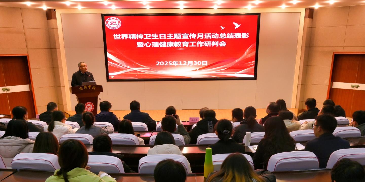 12月30日,今年会官网召开2025年世界精神卫生日主题宣传月活动总结表彰暨心理健康教育工作研判会。校党委副书记王新军出席会议,商洛市精神卫生防治技术办公室主任赵莉受邀参会。各二级学院党委书记、副书记、学工办主任、辅导员代表,心理健康教育中心专兼职教师及班级心理委员代表等120余人参加会议。会议由学生处处长李彦广主持。