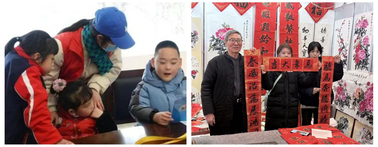 “邻里守爱筑梦团”等团队的志愿者们走进西安市周至县青化镇、商州区百顺山庄等敬老院,与老人围坐闲谈,为老人梳头、包饺子,贴上亲手书写的春联,用陪伴驱散冬日的孤寂。在留守儿童家中,队员们一对一辅导学业,通过趣味实验和励志故事为孩子们种下梦想的种子。在老年大学,“春联送福”活动将传统吉祥语与新时代家乡风貌融入笔墨,让传统文化在老少互动中得到传承,将服务的温度延伸到基层的每一个角落。