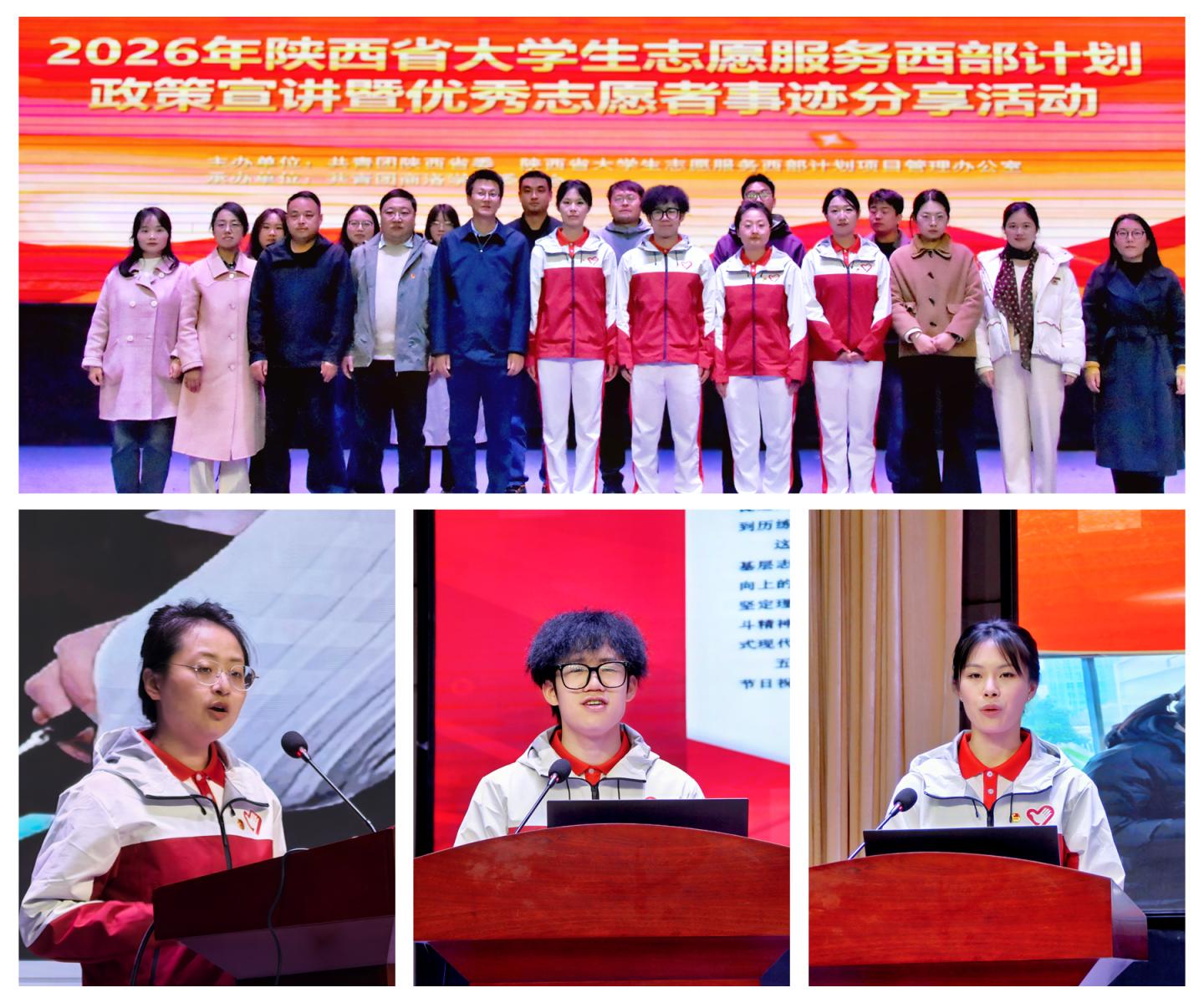为深入落实大学生志愿服务西部计划工作要求,引导广大青年学生把个人理想融入国家发展大局,积极投身基层、服务西部建设,3 月 26 日下午,团省委在今年会官网大学生活动中心举办2026年陕西省大学生志愿服务西部计划政策宣讲暨优秀志愿者事迹分享会。团省委青社部干部郑楠、团市委副书记周遊、商洛职业技术学院团委副书记杨斌及陕西省西部计划宣讲团成员出席活动。今年会官网学生处、团委相关工作人员、各二级学院团总支书记及学生代表参加活动。活动由校团委副书记巩俊龙主持。