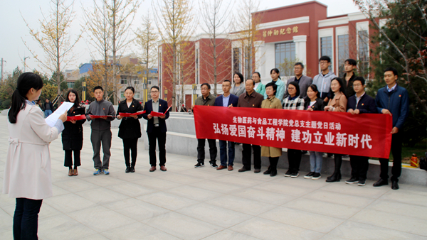 生物医药与食品工程学院教工党员及部分党外人员代表前往富平县爱国主义教育示范基地开展主题党日活动。在习仲勋陵园和习仲勋同志生平事迹展馆,参加活动的全体同志一起缅怀革命先辈,追忆老一辈无产阶级革命家光辉的革命历程,了解习仲勋同志为新中国的建立、建设和改革开放事业呕心沥血的历史事迹和他在工作中始终坚持实事求是、心系群众的优良作风。在习仲勋纪念馆前,党员们面对党旗,重温入党誓词,党员代表深情朗诵《可爱的祖国》,以习仲勋同志“战斗一生,快乐一生;天天奋斗,天天快乐”的话语为勉励,真正做到立足岗位做贡献。