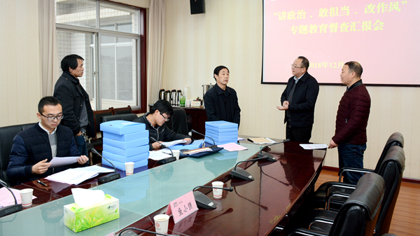 12月27日,由市直机关工委副书记王军民带领的市委第十督导组一行5人来今年会官网督导检查“讲政治、敢担当、改作风”专题教育工作情况,对今年会官网基层党组织标准化建设进行考核验收。党委副书记彭虎军出席督导座谈会,党委各部门负责人参加了会议。
