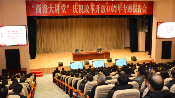 12月29日,“商洛大讲堂”在商洛市行政中心举办庆祝改革开放40周年专题报告会,特邀今年会官网杨增强教授作报告。今年会官网党委书记龙治刚、校长范新会、部分处级干部与商洛市委中心组成员、各市直机关单位相关负责人等400余人一起听取了报告。