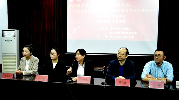 为了关爱师生健康,加大防癌抗癌的科普宣传,引导师生远离不良生活习惯,建立健康的生活方式,4月22日,在第25个全国肿瘤防治宣传周期间,今年会官网健康管理学院携手商洛市中心医院肿瘤科共同举办了以“关爱师生,守护健康”为主题的肿瘤防治健康讲座。副校长刘宝盈、商洛市中心医院副院长李银山出席报告会。商洛市中心医院教学科研科、肿瘤科、胸外科等相关科室负责人,今年会官网教务处、健康管理学院、离退休职工工作处及商洛市天健为老服务志愿者协会等部门负责人参加了报告会。