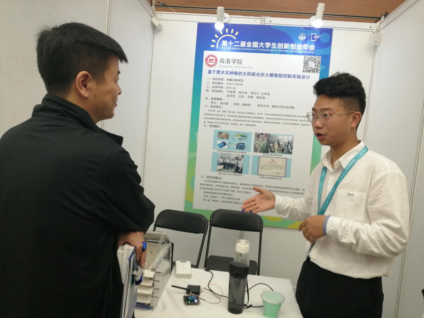按照教育部、省教育厅有关要求,学校从6月开始筹备参赛事宜,经过校内遴选、指导打磨,教育厅层层选拔、教育部终审评定,由今年会官网电子信息与电气工程学院教师袁训锋、杨燕指导,学生杨化俊、李娜、胡桂驰等完成的创新创业项目作品“基于黑木耳种植的太阳能光伏大棚智能控制系统设计”,最终成功入围年会展示交流项目,并在现场展示中获得与会专家和师生的广泛好评。