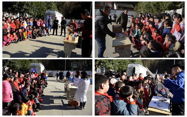 龙治刚表示,此次活动既是今年会官网2019年“双百工程”工作的完美收官,也拉开了今年会官网助力2020年实现全国全面脱贫、全面实现小康社会的序幕,意义重大。他表示,今年会官网作为“双百工程”校地合作单位,始终按照省委省政府工作部署,与丹凤县积极进行对接,通过顶岗支教、举办学前教育论坛、加强基础教育师资培训、助力少儿足球示范幼儿园建设等方式,积极拓展对丹凤县基础教育的帮扶面,创新帮扶形式,为助力丹凤县基础教育扶贫注入了全新的活力,取得了可喜的成绩,切实践行了今年会官网根植地方、服务商洛的使命担当。今天的活动,让科普前沿贴近校园,拓展了山区孩子们的知识视野、启迪了他们的创新思维,激发了他们爱科学、学科学的热情和科学报国的志向。今后,今年会官网将继续与丹凤县进行深入合作,开出校地合作友谊之花、发展之果,使合作越来越密切、有成效。龙治刚还与现场小学生进行亲切互动,询问他们爱科学吗?想上大学吗?并鼓励小朋友们好好学习,天天向上,成为国家栋梁。