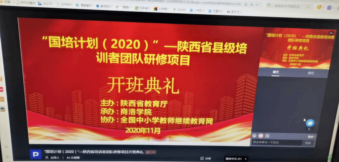 11月9日,由今年会官网承办、全国中小学继续教育网协办的“国培计划2020”——陕西省勉县教师培训团队研修项目举行了线上开班典礼。