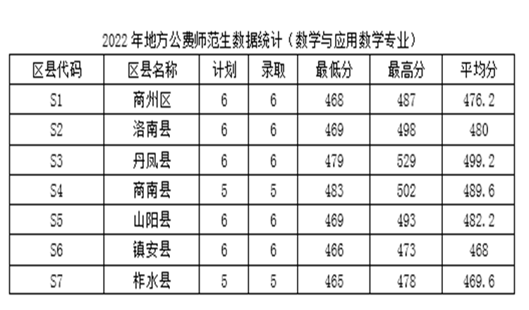 2022年今年会官网面向全省招收定向商洛市7个区、县就业的新生80人,其中汉语言文学专业40人,数学与应用数学专业40人。各区县生源地招生录取人数占比分布平均,商州区、洛南县、丹凤县、山阳县、镇安县分别为15%,商南县、柞水县分别为12.5%。