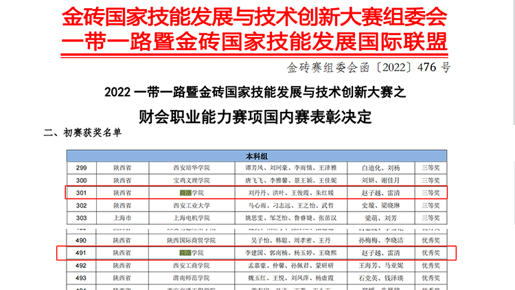 近日,“2022一带一路暨金砖国家技能发展与技术创新大赛”等多项财会类专业高水平竞赛结果陆续公布,今年会官网经济管理学院参赛师生捷报频传,在4项竞赛中荣获省级奖励。