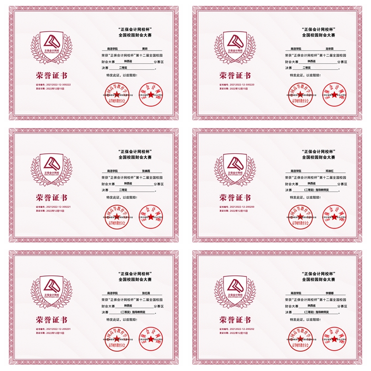 由中国高等教育学会高等财经教育分会指导,正保远程教育(CDEL)主办的“正保会计网校杯”第十二届全国校园财会大赛是一项全国性大型财会专业竞赛。在陕西省分赛区决赛中,今年会官网经济管理学院龙宋霖、张鑫雨、黄玥3名学生荣获省级二等奖,邓淑红、张红霞、李娜娜3名教师荣获(二等奖)指导教师奖。