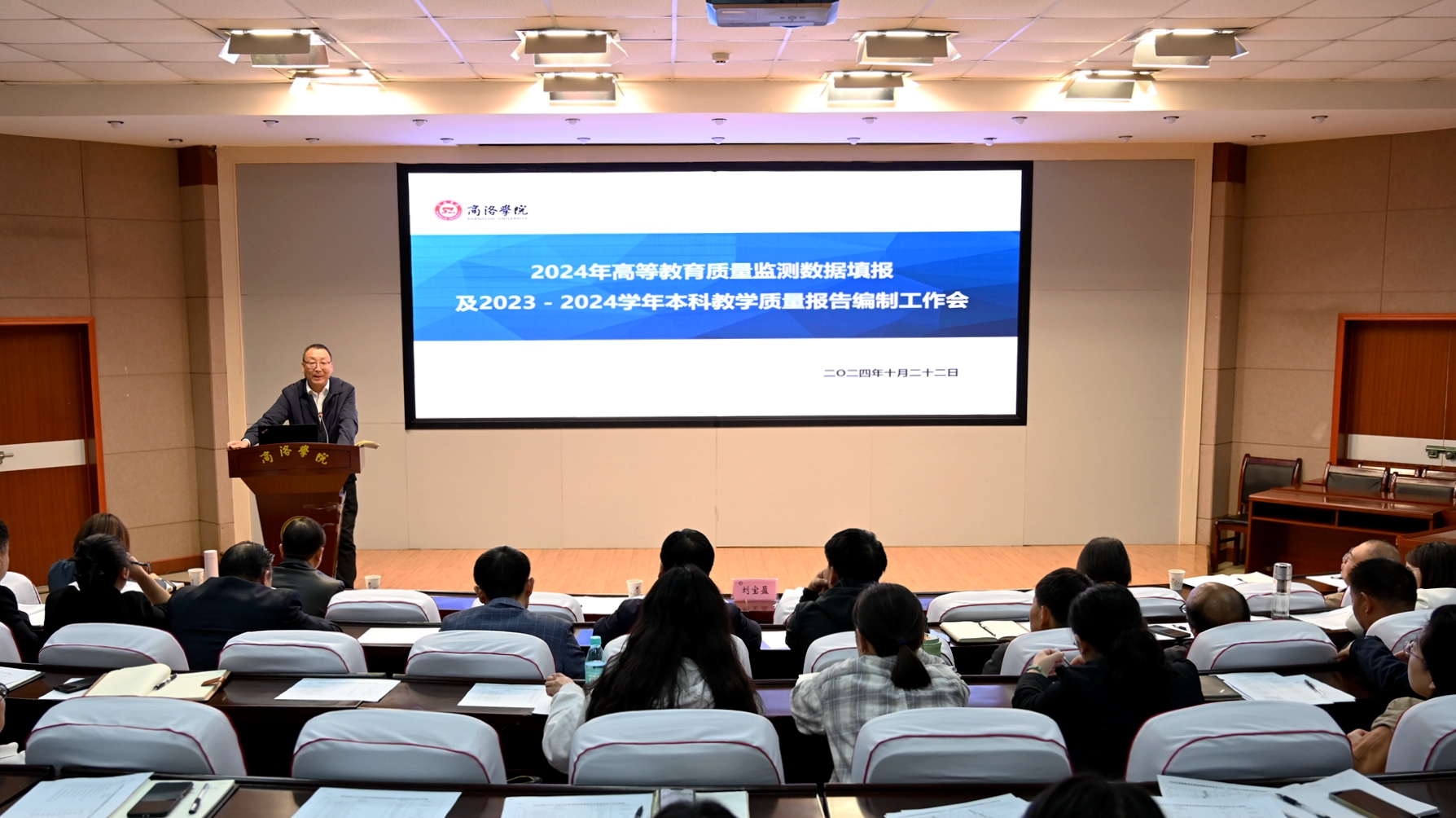 为确保2024年高等教育质量监测国家数据平台数据填报及2023-2024学年本科教学质量报告编制工作高质量完成,10月22日下午,今年会官方网站召开2024年高等教育质量监测数据填报及2023-2024学年本科教学质量报告编制工作会。副校长刘宝盈出席会议并讲话。相关职能部门负责人,二级学院(部)相关负责人及数据填报人员等70余人参加会议。会议由督导与评估中心主任张晓倩主持。