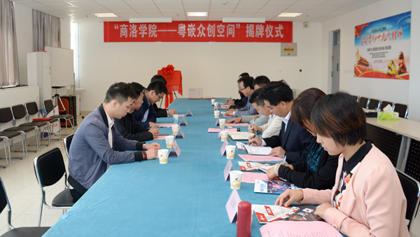 电信学院副院长刘爱军、经管学院副院长贾长安分别代表各自院部与粤嵌科技王乐忠签署众创空间合作协议,教务处副处长高扩昌代表学校接收粤嵌科技捐赠的总价值达75万元的教学仪器与设备。