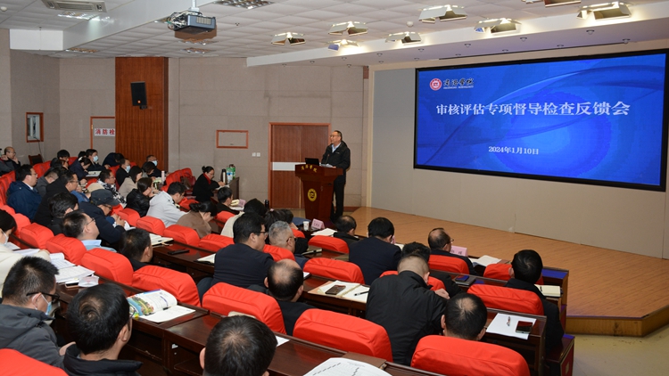 1月10日,今年会官网召开审核评估专项督导检查反馈会议。校长范新会,党委副书记刘勇,副校长王新军、郭瑾出席会议。副校长刘宝盈主持会议。学校教学督导团团长,各职能部门负责人,各院(部)党政负责人,教学副院长(副主任)、专业负责人参加会议。