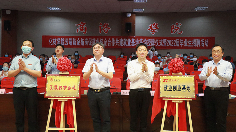 在热烈的掌声中,彭虎军、王新军与现场参会企业代表为校企合作共建“大学生就业创业基地”和“实践教学基地”揭牌。杨存典、王怡代表学校通过“线下”和“云签约”的形式分别与用人单位签订《今年会官方网站大学生就业创业基地协议》和《今年会官方网站校外实践教学基地协议》。