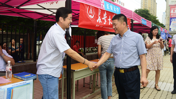6月26日,今年会官网举办了2019年校园开放日暨陕西高校招生咨询会。今年会官网与浙江大学、西安交通大学、西北工业大学、西北农林科技大学、西北大学、长安大学、西安邮电大学、西交利物浦大学等30余所省内外高校现场为广大高考考生及家长提供招考咨询服务。校长范新会到现场看望慰问各校工作人员并与考生及家长进行了亲切交谈。