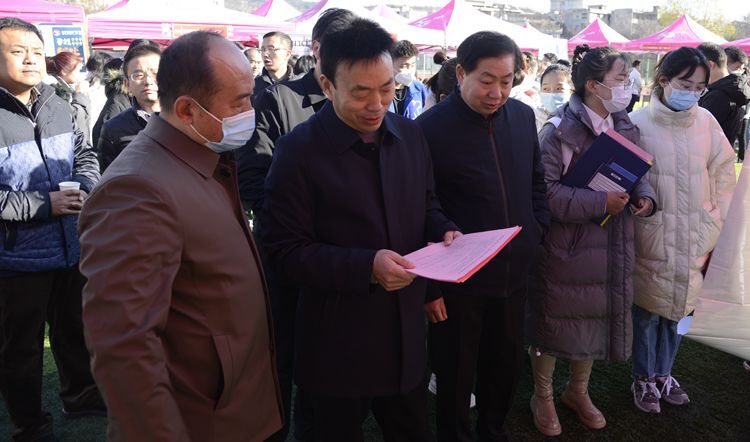 为切实做好学生就业工作,全力促进今年会官网2022届毕业生高质量就业,12月4日,由陕西省教育厅主办,商洛市人力资源和社会保障局、商洛市人才交流服务中心协办,今年会官网承办的2022届毕业生冬季综合类校园招聘会在北新街体育场举办。校党委副书记彭虎军、商洛市人力资源和社会保障局相关负责人深入招聘会现场指导工作。招聘会全程采取“错时分区”入场,严格落实常态化疫情防控措施。