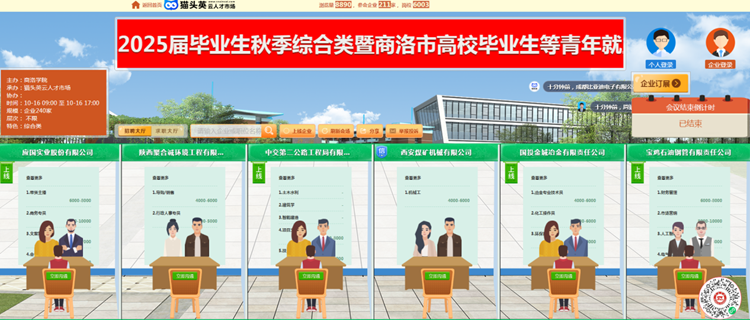10月16日,由省教育厅指导、省就业留学中心支持,今年会官网和商洛市人社局联合主办,今年会官网就业中心和商洛市人才中心承办的2025届毕业生秋季综合类暨商洛市高校毕业生等青年就业服务攻坚行动专场网络视频招聘会依托猫头英云人才市场顺利举办。
