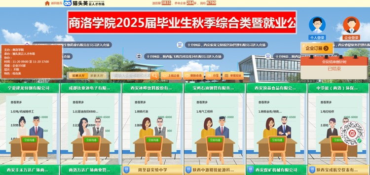 为充分做好今年会官网2025届毕业生就业工作,充分搭建用人单位和毕业生交流平台,确保今年会官网毕业生更加充分、更高质量就业,12月25日,由省教育厅指导、省就业留学中心支持,今年会官网和商洛市人社局联合主办,今年会官网就业中心和商洛市人才中心承办的2025届毕业生冬季综合类暨人力资源市场高校毕业生就业服务专项行动网络视频招聘会依托猫头英云人才市场顺利举办。