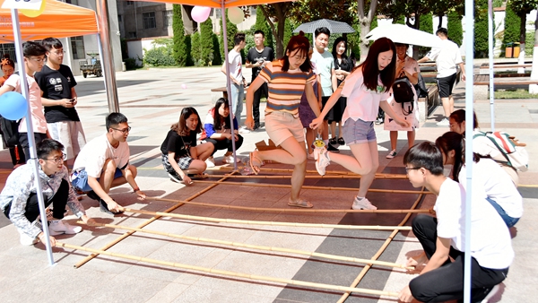 ——举办素质拓展活动,传承体育文化精神。在校体育场开展以“卓越团队,共赢未来”为主题的素质拓展活动。活动共设置了珠行万里、搭桥过河和踩气球三个项目。各组成员满怀激情,奋力拼搏,用平稳的心态和良好的协作能力完成了各项比赛,深化大学生“走下网络,走出宿舍,走向操场”主题课外体育锻炼活动,将德育与智育、体育、美育有机结合,寓思想政治教育于体育文化活动中,强化校训校史育人功能,营造了良好的校风和学风。