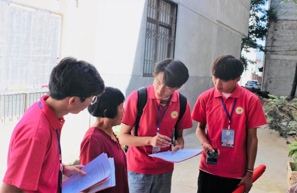 实践团成员进行问卷调查并宣传垃圾分类常识