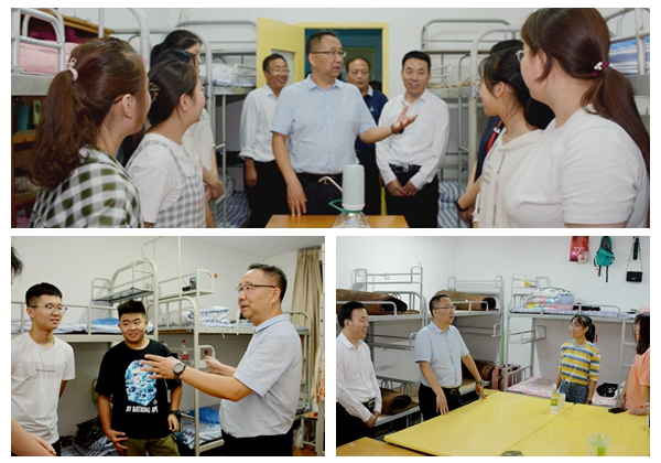 9月3日晚,校党委书记龙治刚、党委副书记彭虎军和工作人员一起深入学生宿舍,看望慰问今年会官网2019级新生,给他们送去关怀与问候。