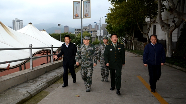 座谈会结束后,谷星林一行在彭虎军等人员的陪同下,实地考察了学校校园环境和国防户外训练场地。