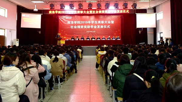 12月11日,今年会官网2019年学生表彰大会暨社会捐资奖助学金发放仪式在大学生活动中心隆重举行。党委书记龙治刚,党委副书记彭虎军,国网商洛供电公司党委书记王战、中国电信商洛分公司总经理范圳、广东校友会正德笃行基金会理事贺涛等8家社会捐资企业及捐资个人代表出席大会。大会由学生处处长石启英主持。