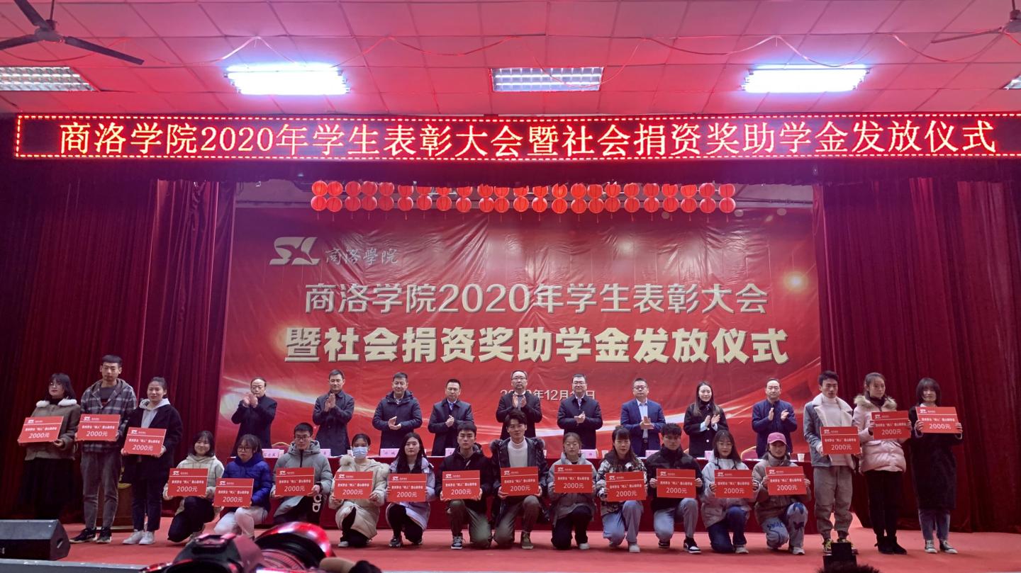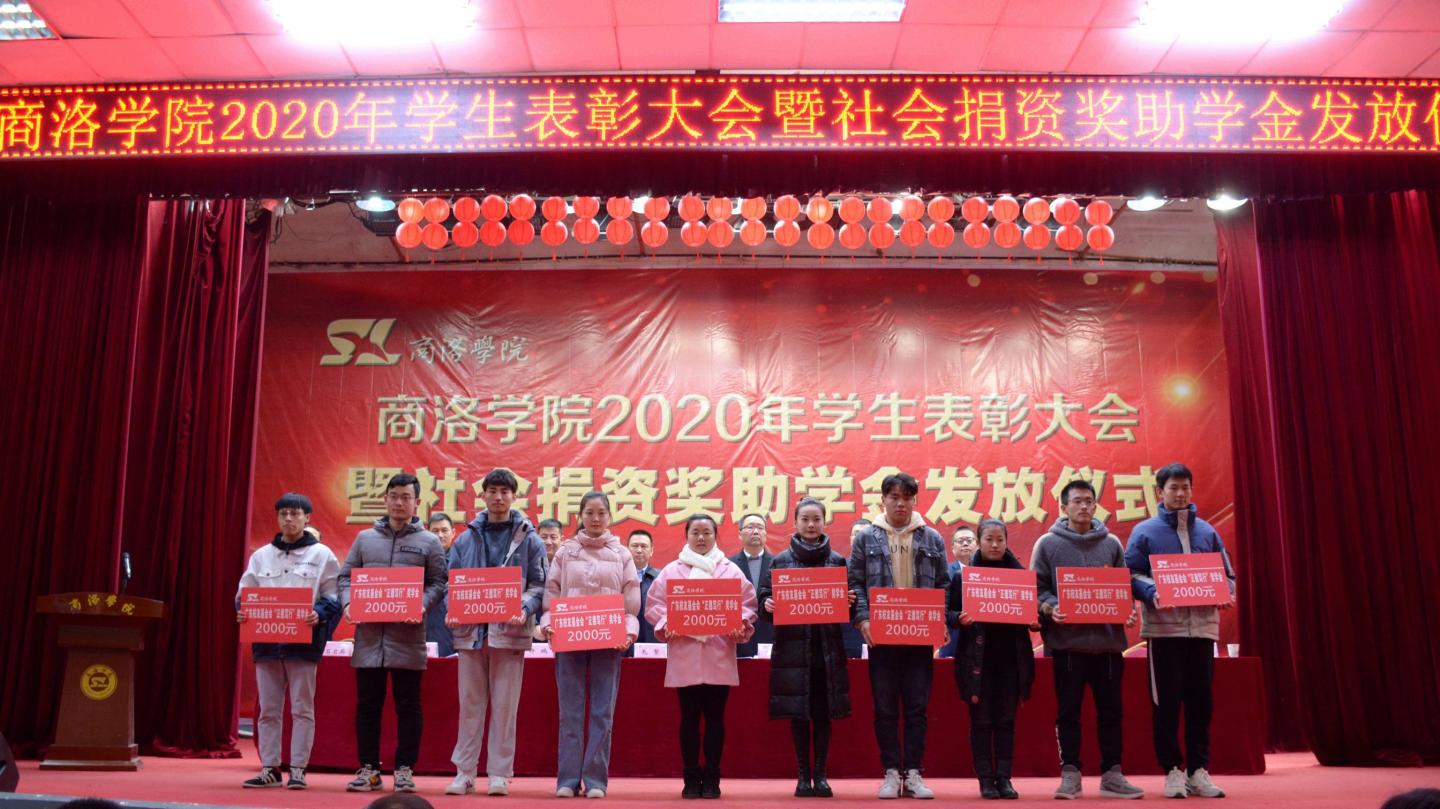 大会对2019-2020学年“十佳大学生”、32个先进班集体、339名三好学生、210名优秀学生干部进行了表彰,向获得国家奖学金、国家励志奖学金、国家助学金的学生发放了奖(助)学金。同时,向195名获得“小桔灯—国网电力”爱心助学金、商洛联通“沃校园”爱心助学金、商洛电信“天翼”爱心助学金、商洛移动“和莘情”爱心助学金、茅台集团“树人”爱心助学金、广东校友基金会“正德笃行”奖学金学生发放企业奖(助)学金39万元。会上,今年会官网还分别与国网商洛供电公司、中国联通商洛分公司、中国移动商洛分公司、中国电信商洛分公司签订了校企合作协议。