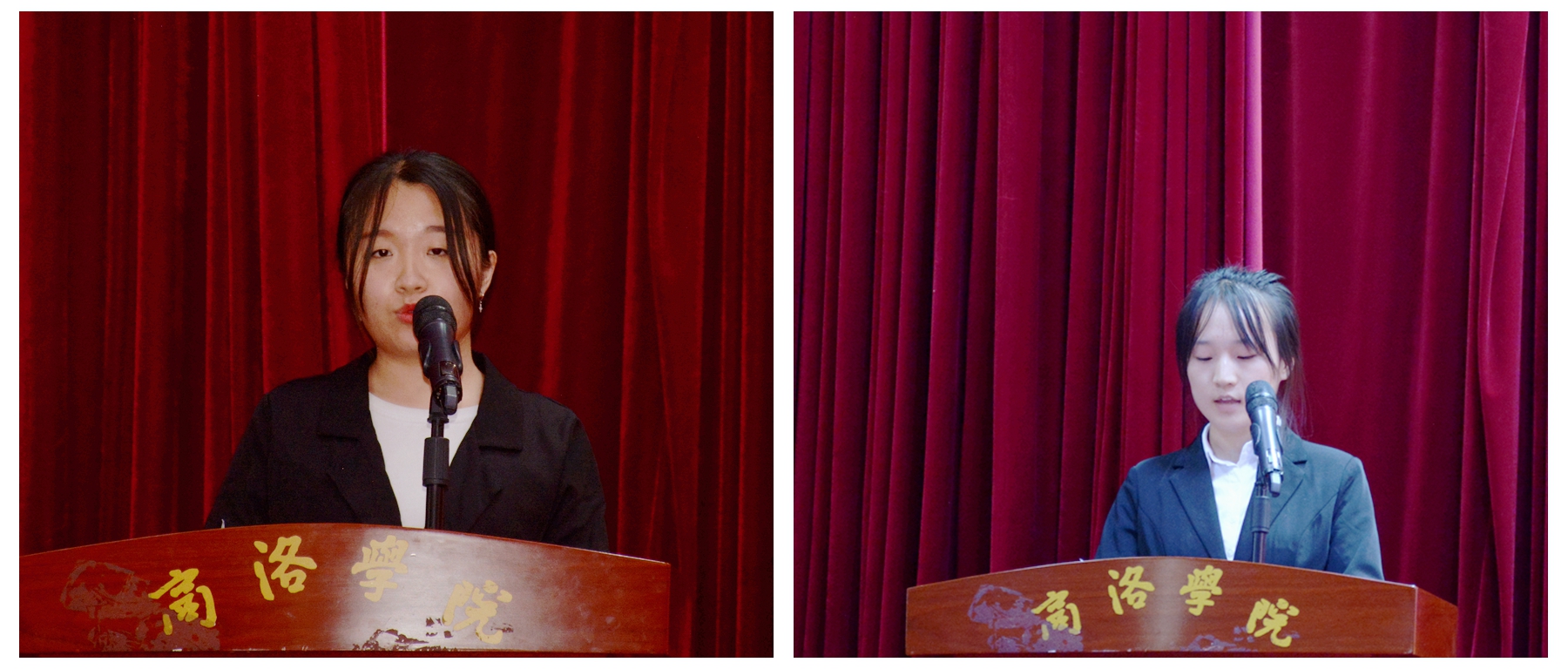 “十佳大学生”荣誉称号获得者制药1801班杨莹莹、“正德笃行”奖学金获得者会计1802班赵翡翡两名学生分别代表受表彰的先进个人和受奖受助学生作了发言。