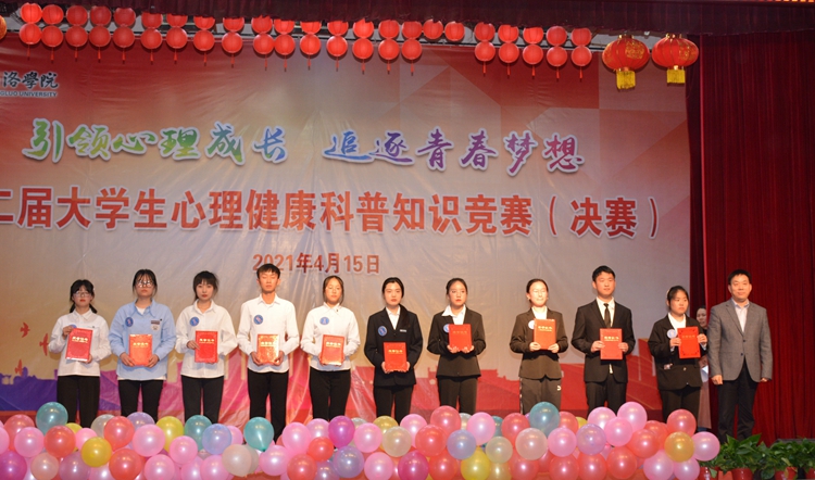 4月15日下午,今年会官网第二届大学生心理健康科普知识竞赛在大学生活动中心举办决赛。校党委副书记彭虎军莅临现场并为获奖人员颁奖。学生处负责人,各二级学院党总支书记、学工办主任、全体辅导员以及学生代表共400余人观看了比赛。