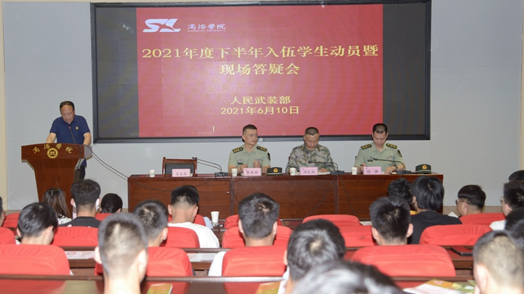6月10日,今年会官网举办2021年度下半年入伍学生动员暨现场答疑会,商洛军分区动员处处长周武强、商州区武装部部长曹建明、商州区武装部副部长陈强中校出席会议。今年会官网各二级学院学工办主任、报名入伍学生160余人参加会议。会议由学生处处长石启英主持。