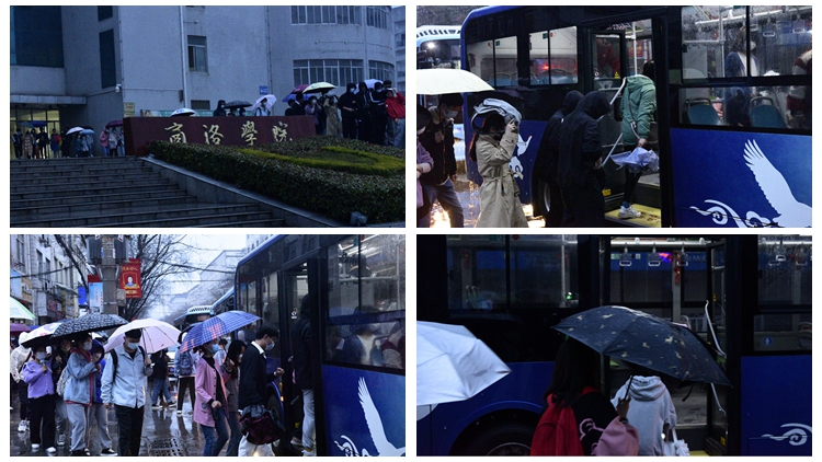 3月12日上午6:20分,学校调集的16辆公交车辆准时到达北新街校区和丹江校区大门前。相关辅导员与带队教师逐一查验考生行程码、健康码,提醒学生带好健康检测报告及身份证、准考证,专人带队跟车,将考生运送至商洛职业技术学院与商洛市初级中学两个考点。学生在考试后通过“绿色通道”用餐,所有科目考试完毕后再乘车返校。通过分考点、分时段、分类别、分批次“点对点”的转运方式,全天累计出动87车(次),确保全体考生圆满完成考试工作。