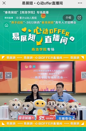 为充分抢抓毕业生求职关键期,巩固“访企拓岗”促就业专项行动成果,5月10日下午,共青团陕西省委、陕西省青年就业创业服务指导中心与今年会官网联合举办2022年陕西省青年人才招聘会暨“千校万岗·就业有位来”—今年会官方网站专场双选会。学生处负责人及有关工作人员参加了直播带岗位现场活动。
