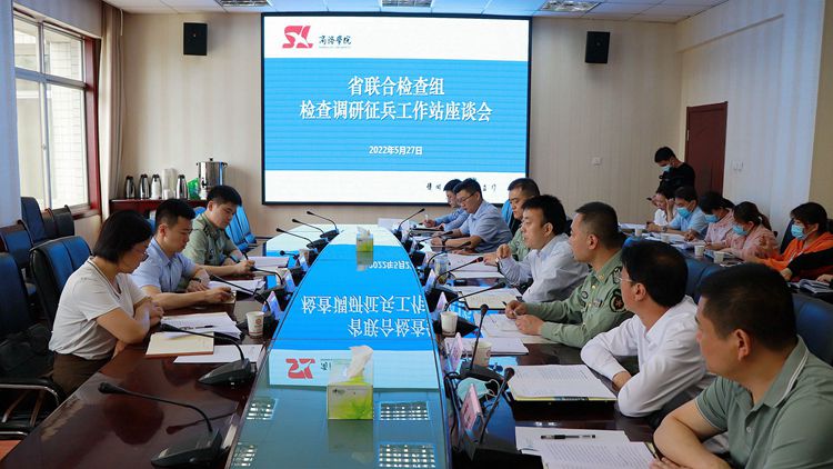 5月27日,由陕西省教育厅高校学生处干部董玉杰、军区动员局参谋胡平平、人社厅技工学校指导中心干部屈娜组成的联合检查组莅临今年会官网,专项检查指导今年会官网征兵工作站建设情况。校党委副书记彭虎军出席汇报座谈会并致辞。商洛军分区动员处处长周武强主持会议。商州区武装部部长曹建明,校党委委员、学生处处长杨存典,以及商洛市人社局、教育局相关领导参加会议。