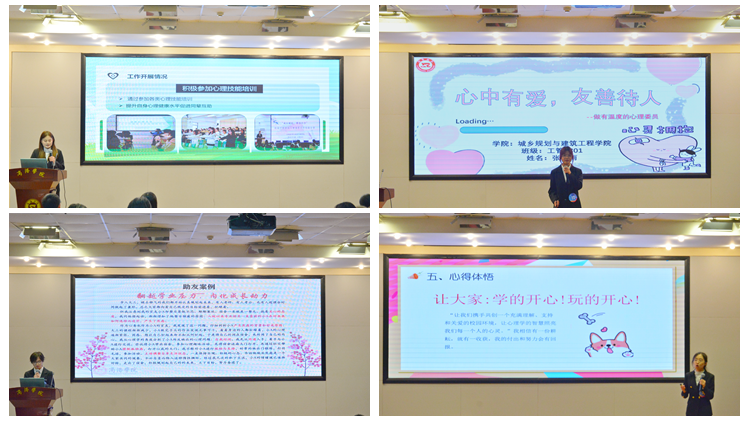 本次评选活动面向全校390个班级的心理委员开展,经学生个人申报、学院初评推荐,学生处资格复审,共有17名心理委员入围校级评选。评选活动包括材料评审、风采展示和情景问答三个环节,选手们通过展示个人工作风采、分享在心理健康工作中的心路历程和感悟,展现出过硬的业务素养。