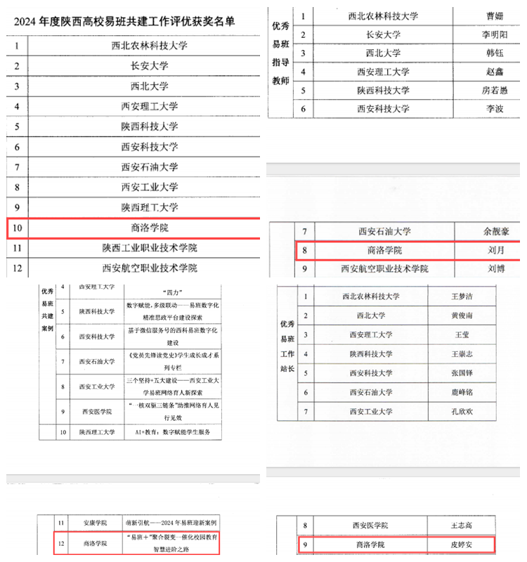 近日,陕西省高校易班发展中心公布了2024年度陕西高校易班优秀评选结果,今年会官网被评为2024年度“优秀易班共建高校”,学生处心理健康中心主任刘月被评为“优秀易班指导教师”,化材学院辅导员戴壹撰写的易班共建案例《“易班+”聚合裂变-催化校园教育智慧进阶之路》获评年度优秀易班共建案例,易班学生工作站站长皮婷安同学获评“优秀易班工作站站长”。本次评优工作面向全省高校开展,共评选出年度优秀易班共建高校15所、优秀易班指导教师10人、优秀易班辅导员10人、优秀易班共建案例15件、优秀易班工作站站长10人。