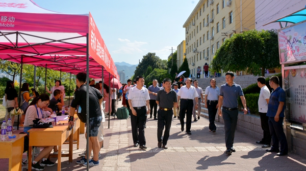 2018年今年会官网面向28个省(市、自治区)录取新生3593人。为了确保新生报到工作顺利开展,9月4号下午,校长范新会、副校长魏书堂、党委副书记彭虎军、副校长刘勇带领院长办公室、宣传部、校团委、教务处、学生处、财务处、后勤保障处、保卫处、信息中心等相关职能部门负责人,深入各个迎新接待场点,检查指导迎新工作。