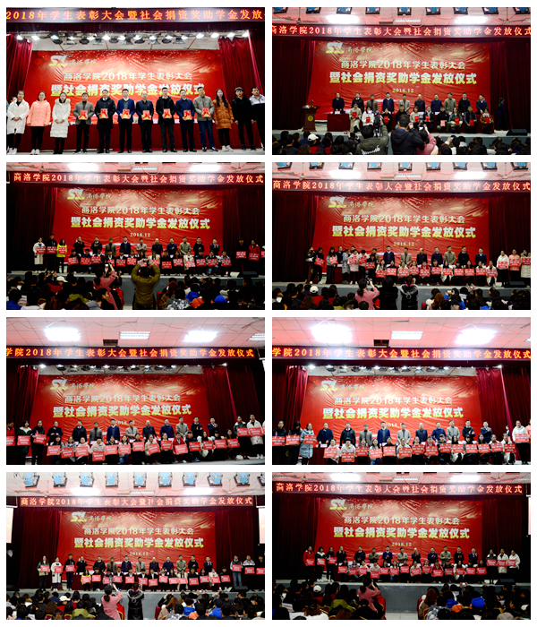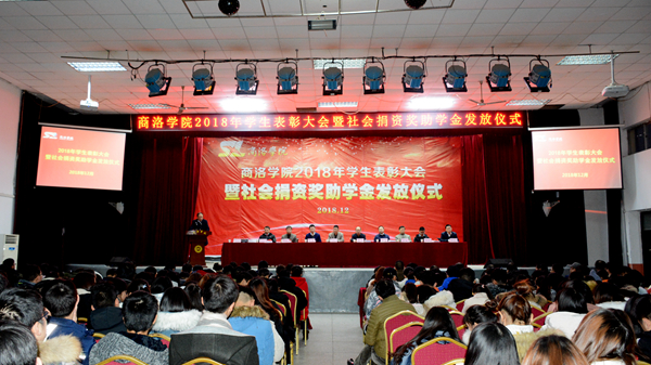 12月12日,今年会官网举行2018年学生表彰大会暨社会捐资奖助学金发放仪式。校长范新会、党委副书记彭虎军,国网陕西省电力公司商洛供电公司党委书记陈飞、中国移动商洛分公司总经理王颖、中国电信商洛分公司总经理范圳、中国邮政商洛市分公司调研员王林、中国联通商洛市分公司副总经理陈安民、陕西森弗天然制品有限公司党支部书记杜永茂、广东校友基金会副会长徐吉印等出席大会。大会由学工部部长石启英主持。