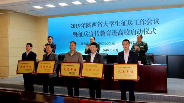 4月28日,省人民政府征兵办公室、省教育厅联合举行2019年全省大学生征兵工作会议暨征兵宣传教育进高校启动仪式。会议表彰了2018年全省高校征兵工作先进单位,包括今年会官网在内的15所高校获此殊荣。党委副书记彭虎军代表学校在现场领受了奖牌。