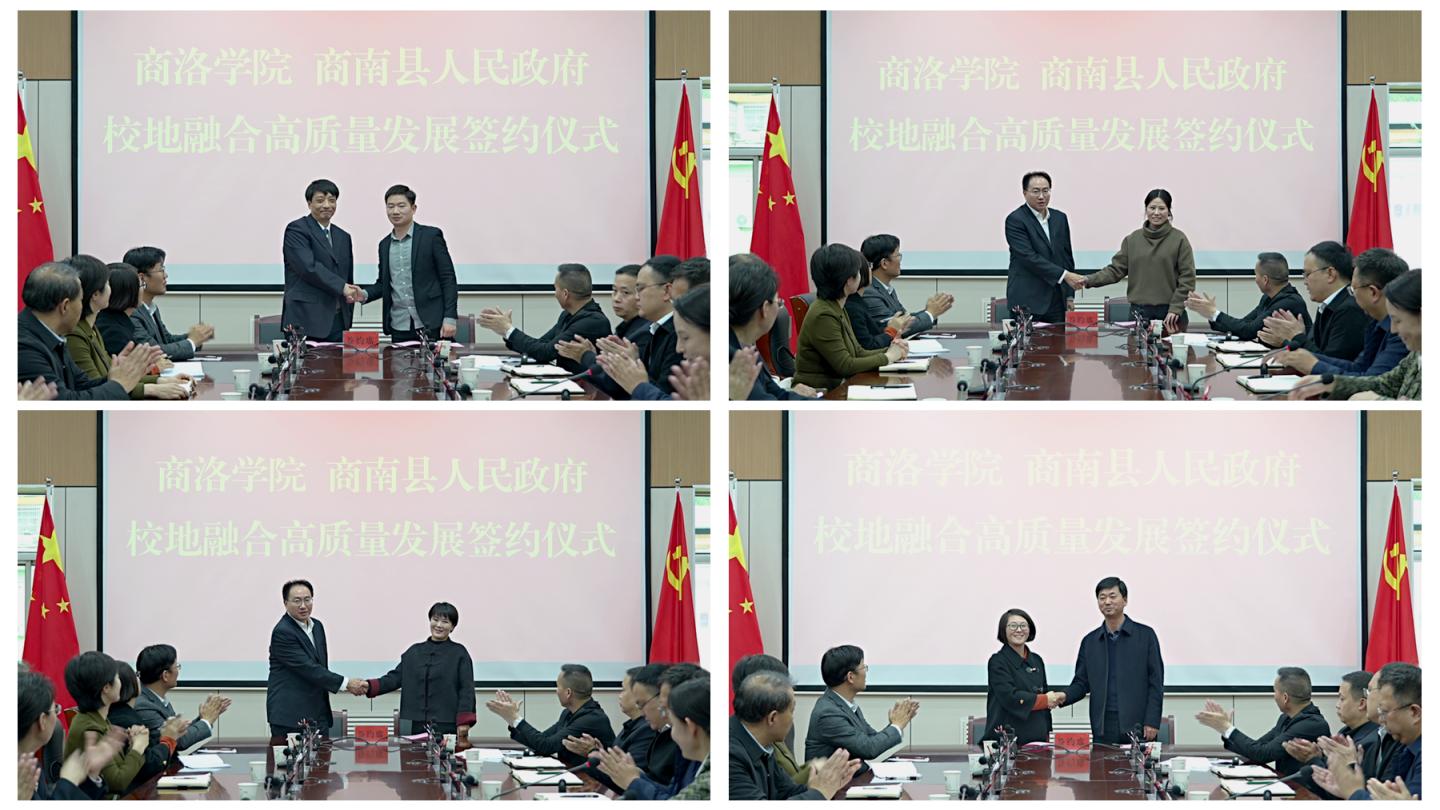 为进一步深化校地校企产学研融合发展,深化落实《今年会官方网站服务商洛高质量发展50条措施》,以科技创新服务地方产业转型升级,10月30日,今年会官方网站·商南县校地融合高质量发展签约仪式在商南县举行。今年会官方网站校长权雅宁出席签约仪式并讲话,商南县县长刘华主持签约仪式,县委副书记钱锋致辞。副校长王新军,商南县常务副县长王建刚、统战部部长聂仕成出席签约仪式。