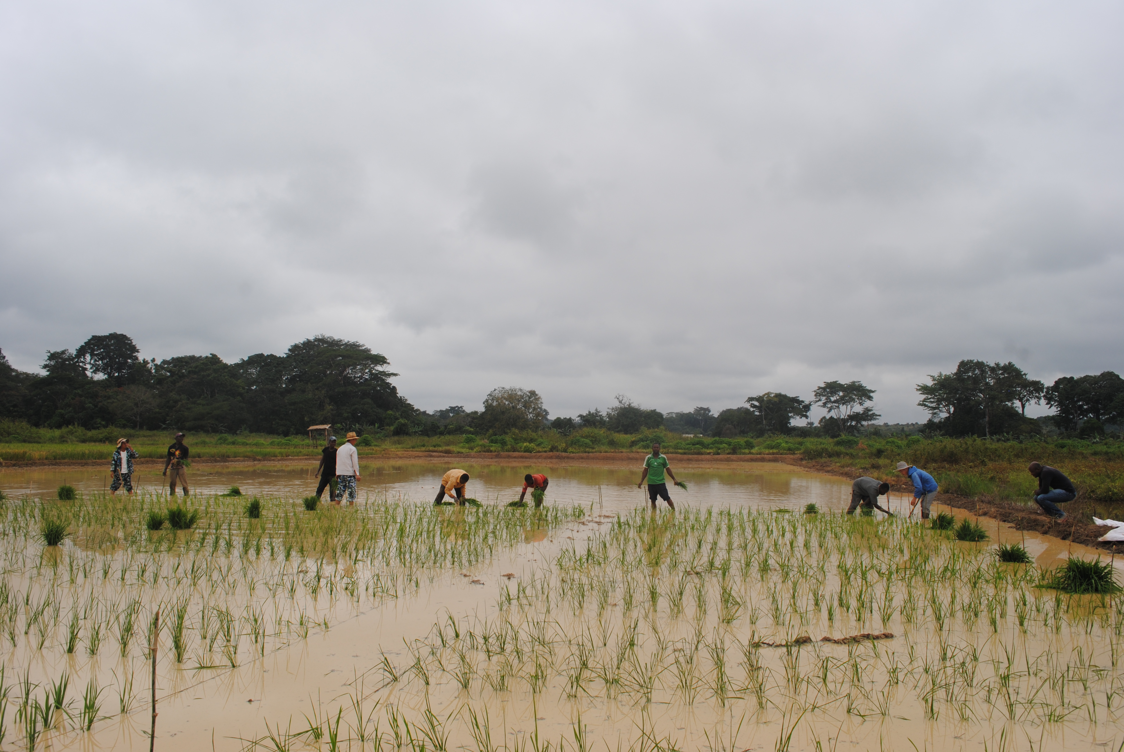 面对艰苦的条件,张军没有退缩,治疗稍有起色,又投入工作了。当时正值水稻育秧时节,为了提升培训效果,张军和队员们挽起裤腿,光脚走进水田进行插秧现场示范,每次都被蚊子叮咬得满腿是包。灌溉渠年久失修,加之沿途农户拦流灌溉捕鱼等现象严重,水稻生长季不定期步行巡修位于雨林身处的水渠,沿途蚂蚁咬得人跳起来,也会偶遇“黑曼巴”。