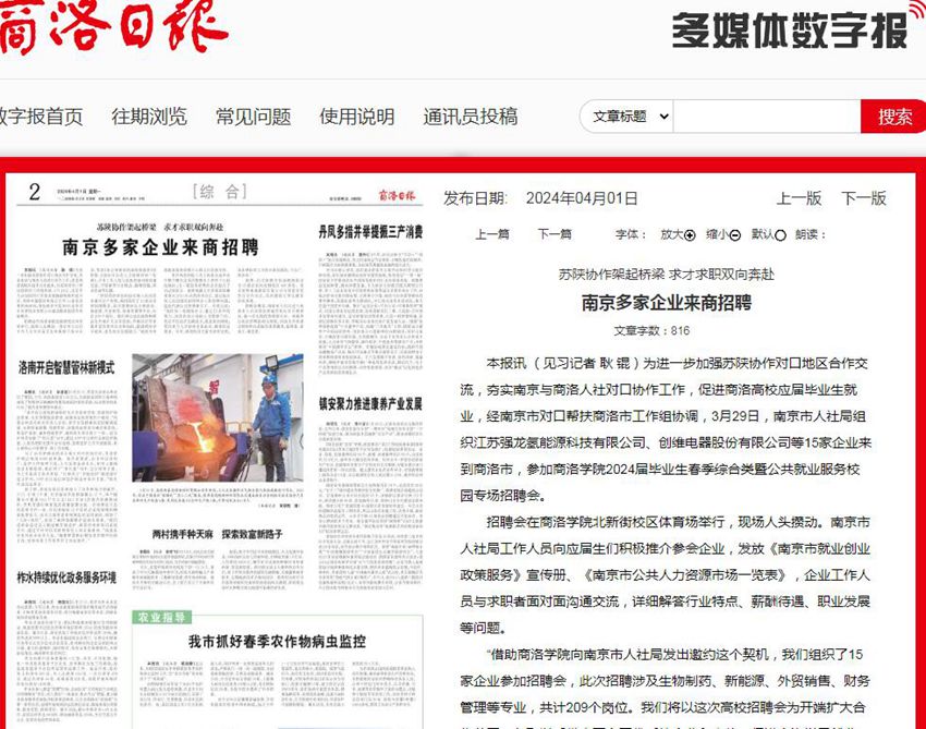 商洛日报:南京多家企业来商招聘